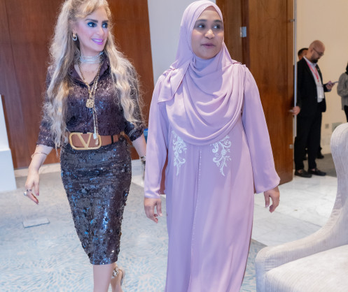 - Senator Dr. Rasha Kelej, Merck Foundation CEO with H.E. Madam SAJIDHA MOHAMED, First Lady of the Republic of Maldives at the 7th Edition of Merck Foundation First Ladies Initiative Summit, Dubai
