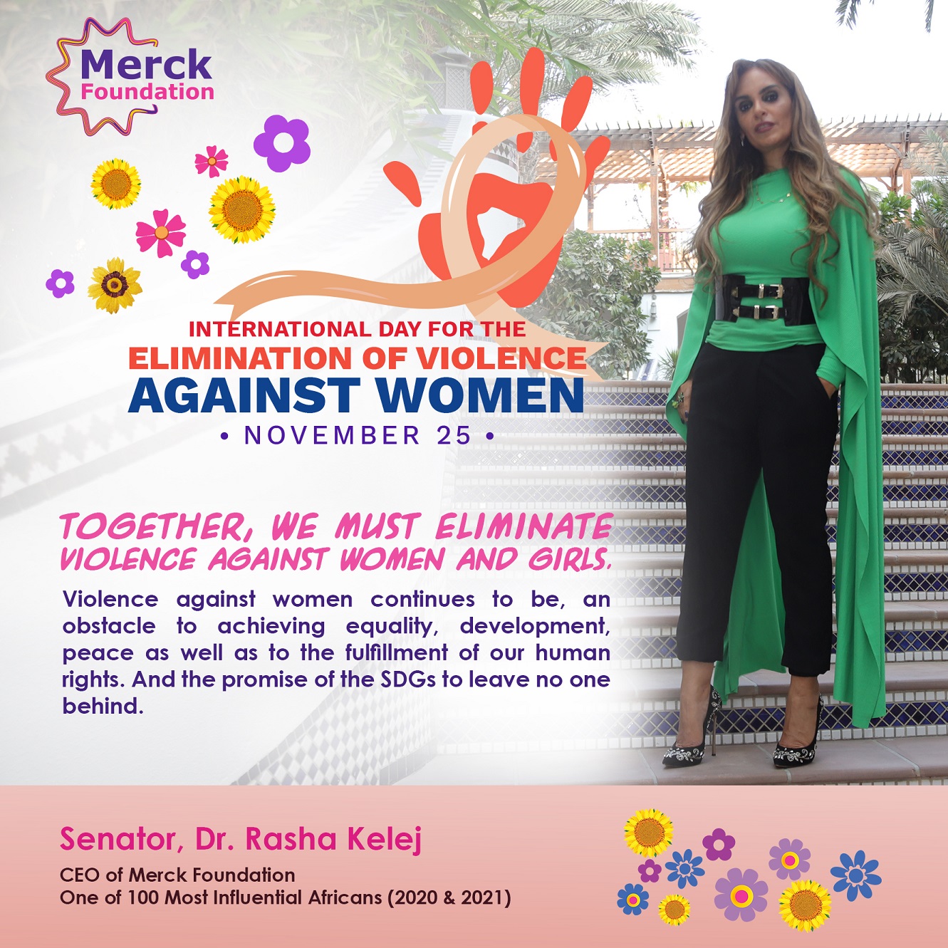 Message from Senator Dr. Rasha Kelej, CEO of Merck Foundation, on International Day for the Elimination of Violence against Women 2021