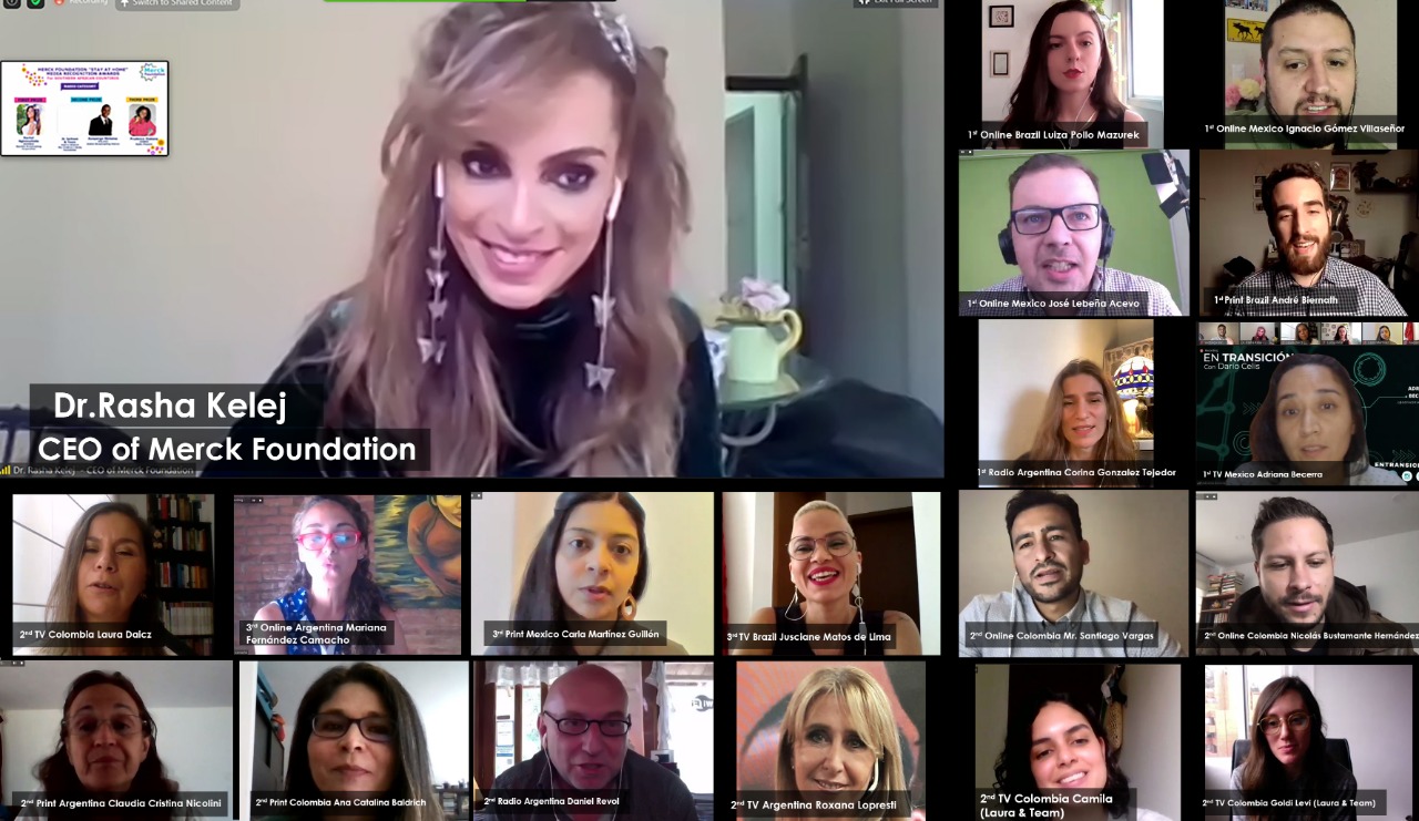 Dr. Rasha Kelej, CEO of Merck Foundation, in conversation with the winners of Latin America “Stay At Home” Media Recognition Awards 2020 (4) (Source: Merck Foundation | 5 years ago) |