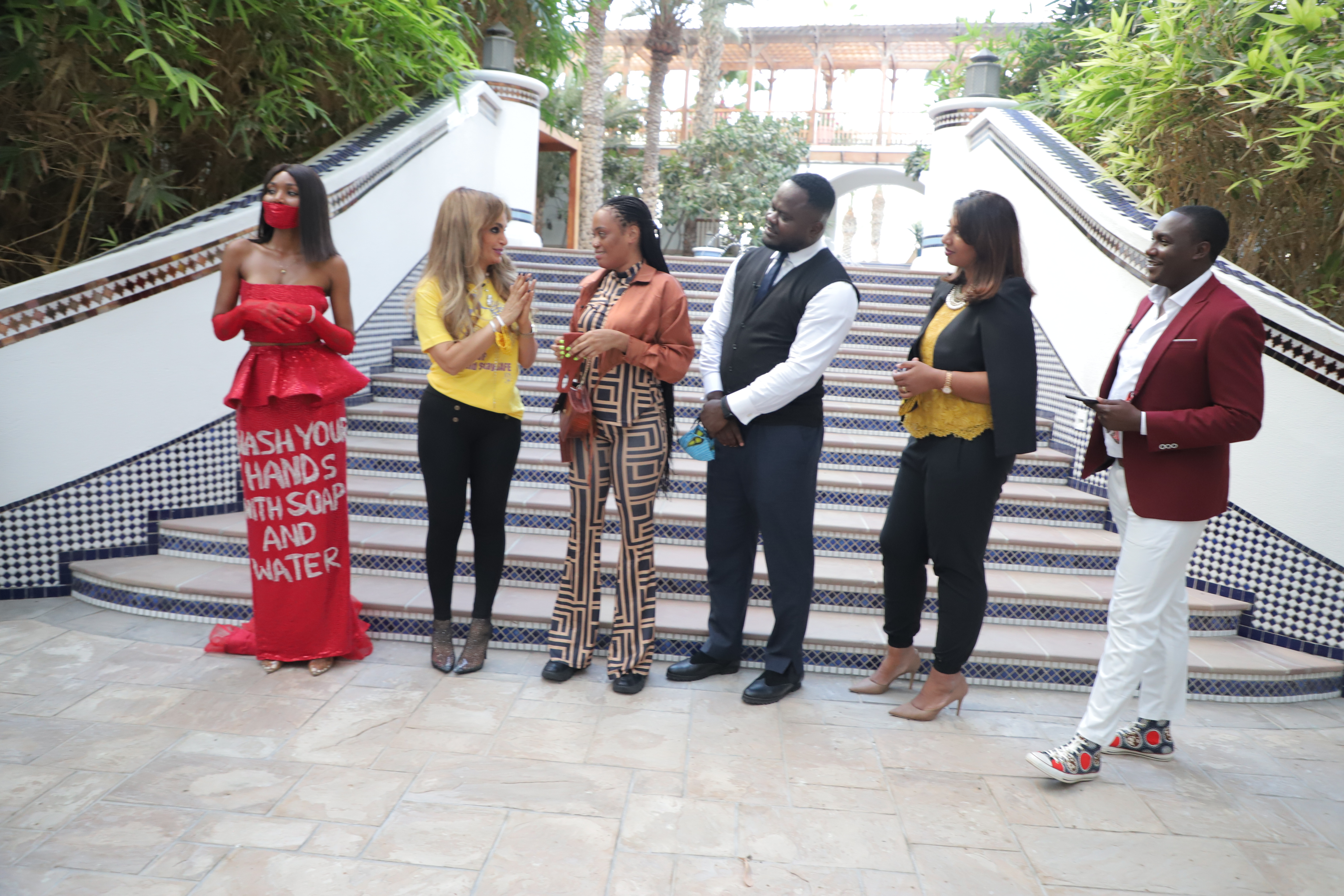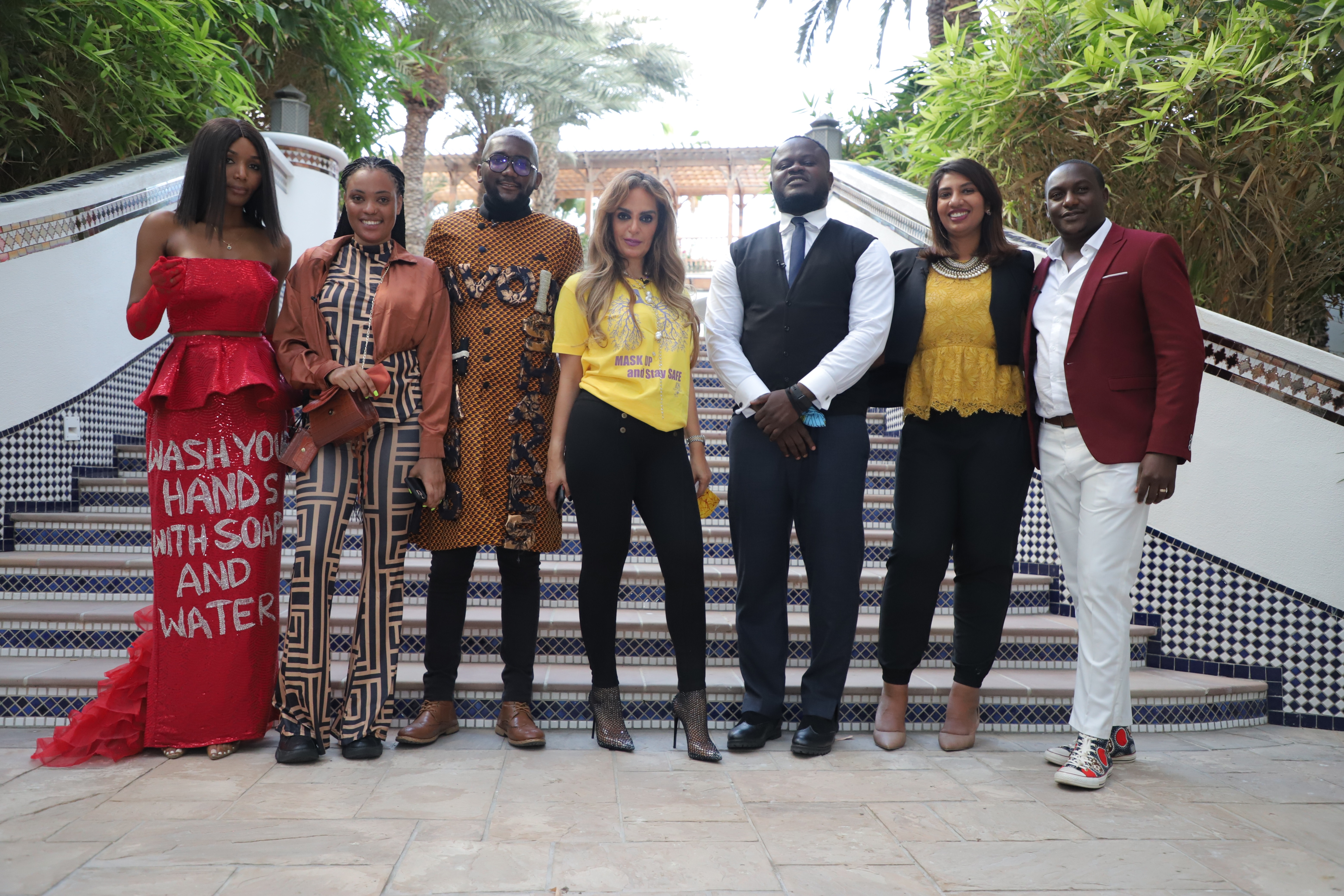 Senator, Dr. Rasha Kelej, CEO of Merck Foundation with Fashion & Art with Purpose Community during the shoot of Episode 7 Our Africa TV Program by Merck Foundation