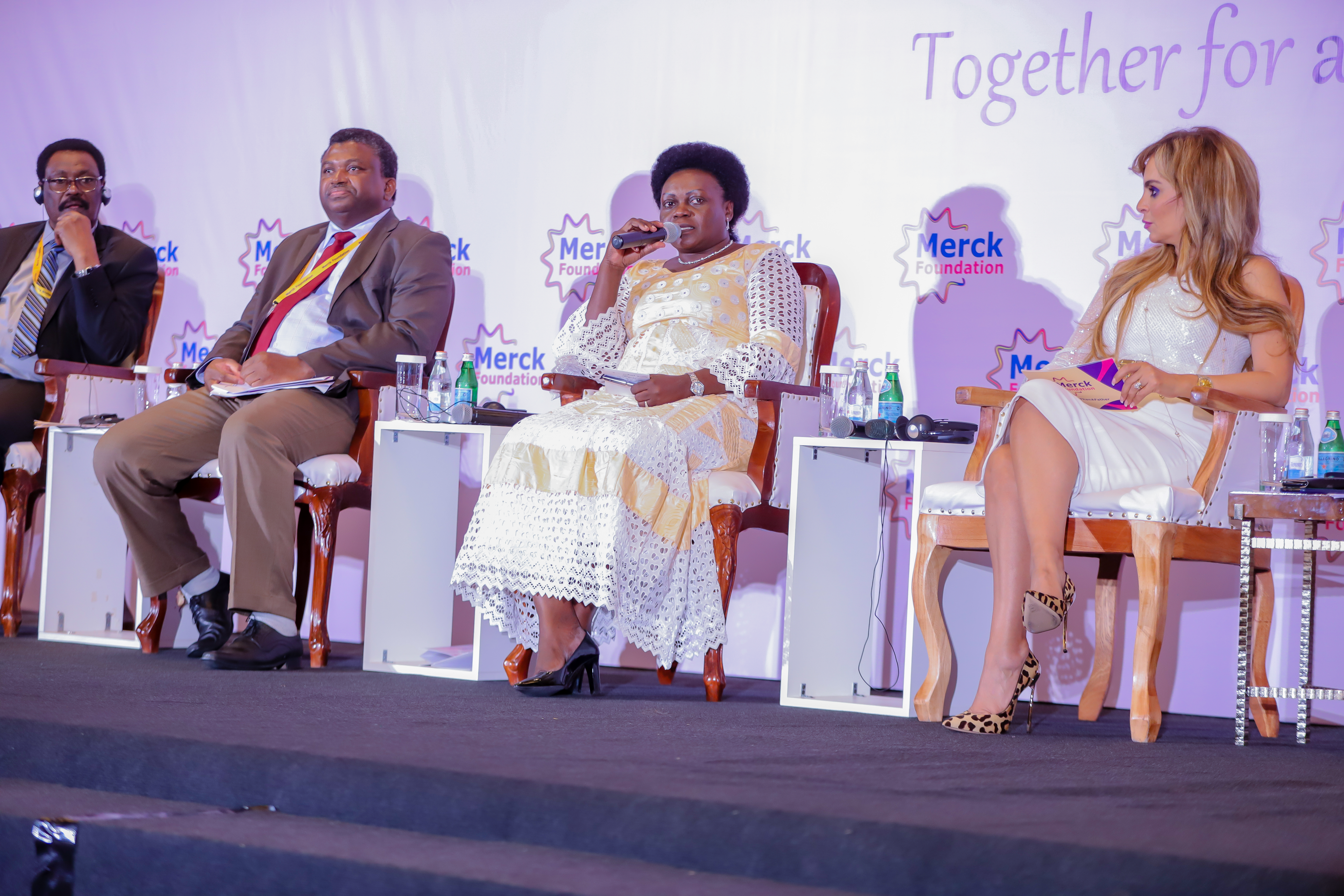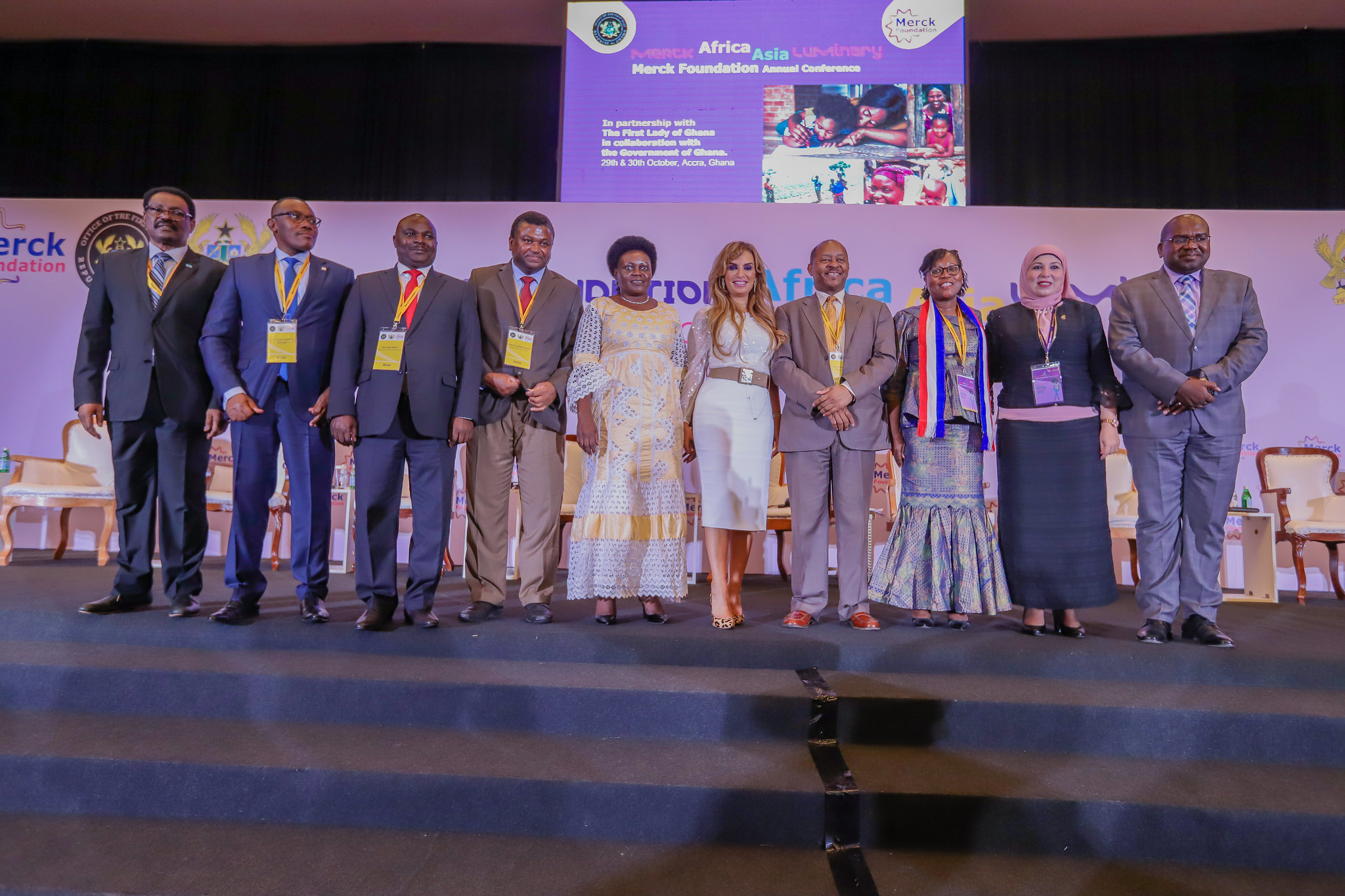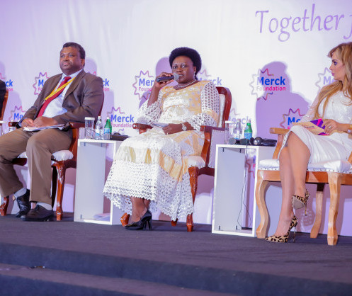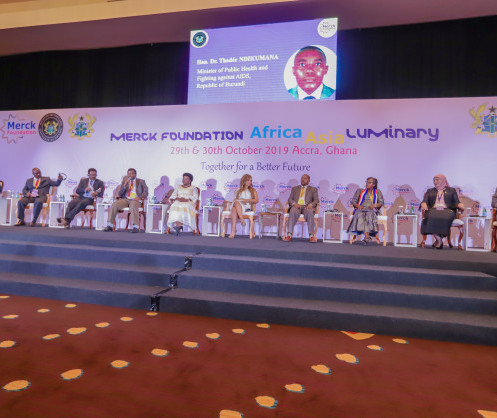 - Hon. Dr. Thadée NDIKUMANA Minister of Public Health and Fighting against AIDS, Republic of Burundi, Hon. Jappie Chancy Mtuwa Mhango Minister of Health and Population, Republic of Malawi, Hon. Prof. Mahamoud Youssouf KHAYAL Minister of Public Health, Republic of Chad, , Hon. Dr. Hon. Dr. Ahmadou Samateh Minister of Health, Republic of The Gambia, Hon. Sarah Opendi Minister of State for Mineral Development (Former Health Minister), Republic of Uganda, Dr. Rasha Kelej CEO of Merck Foundation Co-Chairperson of Merck Africa Asia Luminary, Hon. Dr. Obadiah Moyo Minister of Health and Child Care, Republic of Zimbabwe, Hon. Dr. Wilhemina S. Jallah Minister of Health, Republic of Liberia, Dr. Rasha Kamal Head of the Central Administration for International Students Affairs, Ministry of Higher Education and Scientific Research, Arab Republic of Egypt, Hon. Dr. Chitalu Chilufya Minister of Health, Republic of Zambia during a High level Ministerial Panel at 6th Edition of Merck Africa Asia Luminary 2019 in Accra, Ghana
