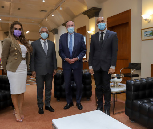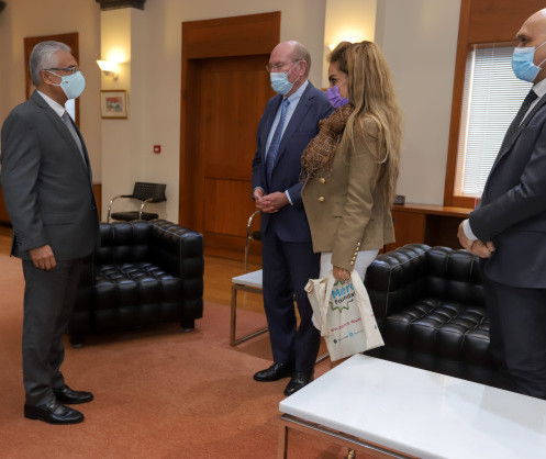 • Prof. Dr. Frank Stangenberg Haverkamp and Senator, Dr. Rasha Kelej during their meeting with the Prime Minister and Minister of Health of Mauritius